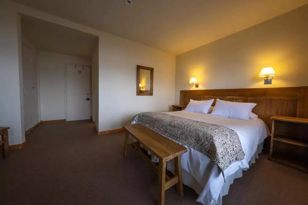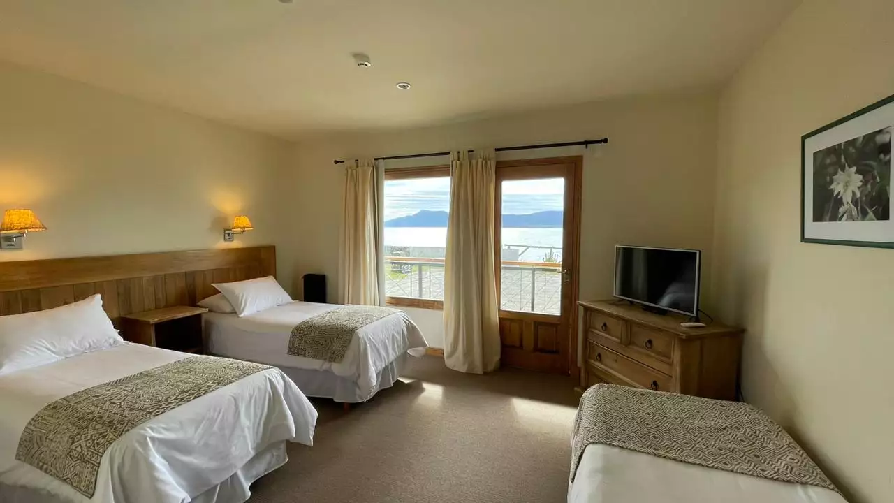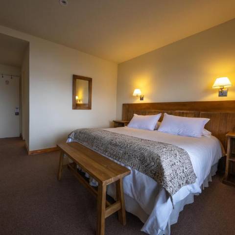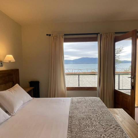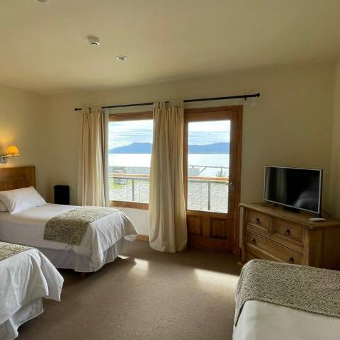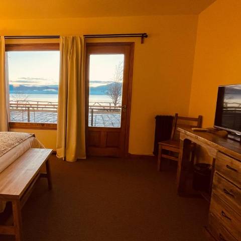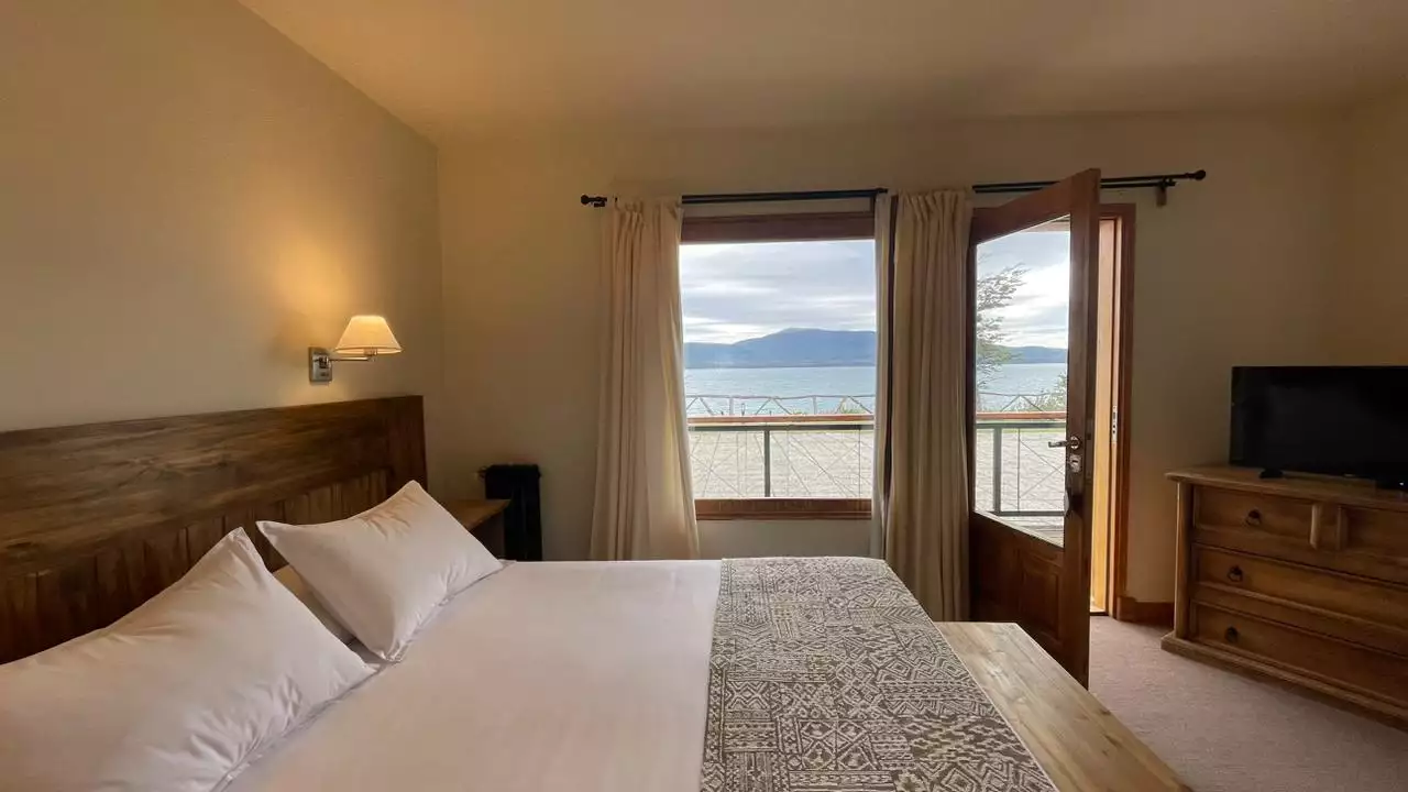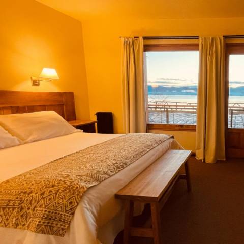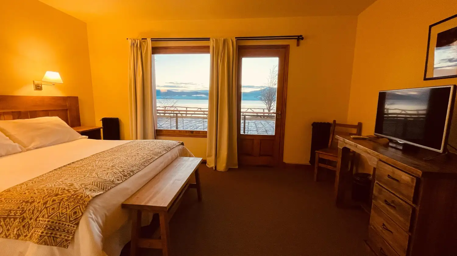 Habitaciones dobles ubicadas en la planta baja de Kaikén. Todas cuentan con baño privado con bañera con hidromasaje, deck con vista al lago y TV LED satelital.
